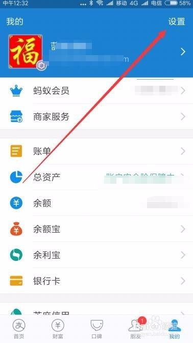 这是就可以打开支付宝我的页面,点击右上角的“设置”按钮。