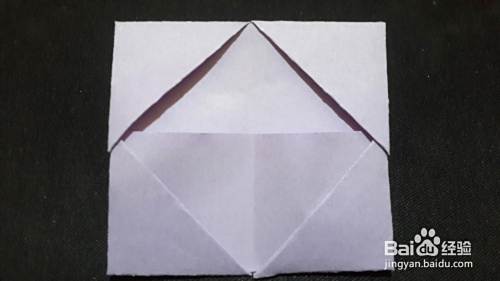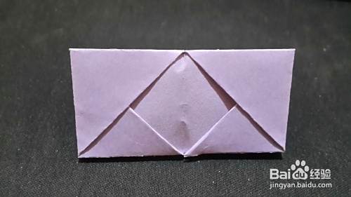 把一边的折叠塞进另一边里面去,这样就出现图案了,也成为一个三角形,如图