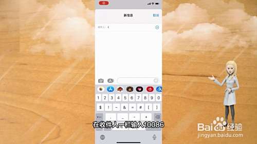 打开手机的短信发送界面,在收件人一栏输入10086。