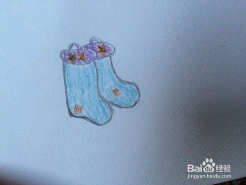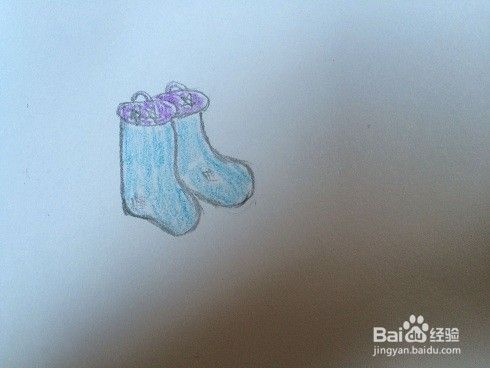 如图,选用蓝色彩铅笔把袜子涂上颜色,袜筒涂上紫色。