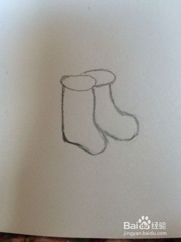 如图,画出袜子的整体轮廓,线条稍微有一点弯度即可。