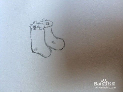 如图,画出两只袜筒上的小五星,然后在袜子的脚后跟画出一点阴影。