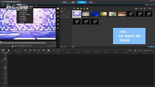 打开会声会影软件首先点击菜单栏中的“设置”选择“参数选择”。