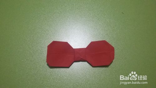 拉开,对折,然后将两角折叠,然后拽住两边拉开,将两边折叠一下,蝴蝶结做好了