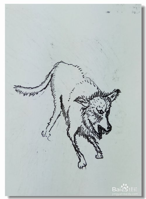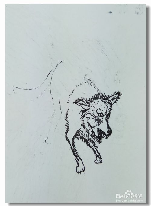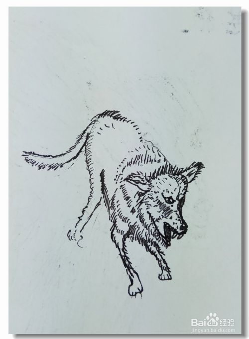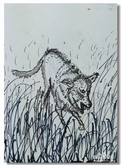 再用线条丰富一下细节,将狼身上的小绒毛画完整。