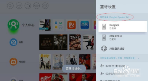打开当贝投影仪F1设置中的蓝牙设置,进入后查找到设备的蓝牙名称