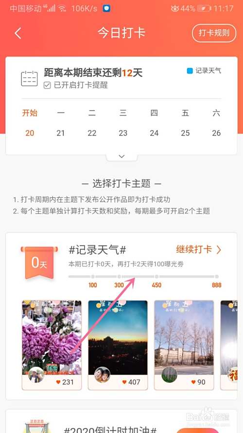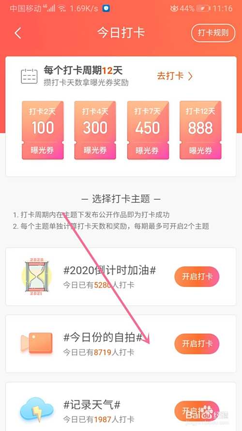 然后在选定打卡类型任务后“根据任务要求完成”即可作为打卡成功。