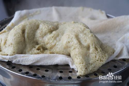 4、然后趁热把湿布和米糕分开;