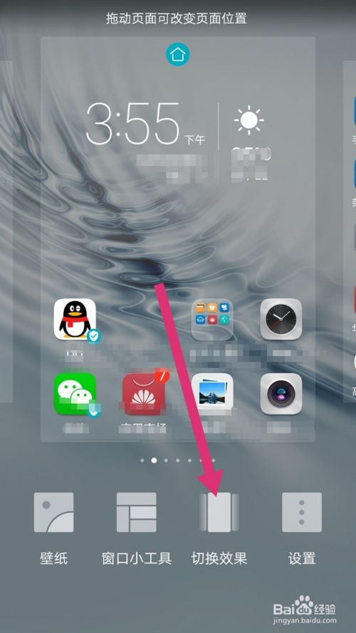 每个切换效果都可以试试看,一般手机桌面的设置,都是在这里设置的哦。