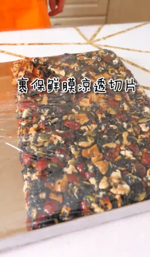 倒入盘中,裹上保鲜膜,凉透后切片。