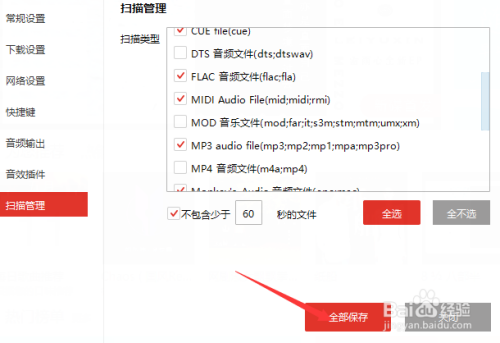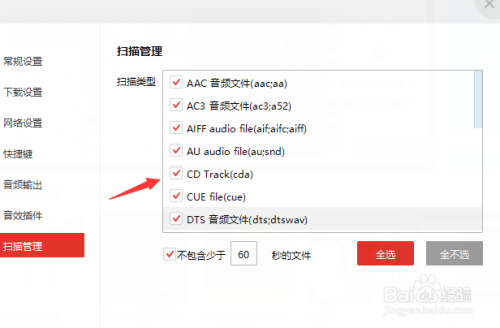 在扫描文件类型中想不要扫描选中的类型使扫描更快点,那么在千千音乐中可以对扫描文件进行设置的,把不要扫描的文件类型不选中即可。
