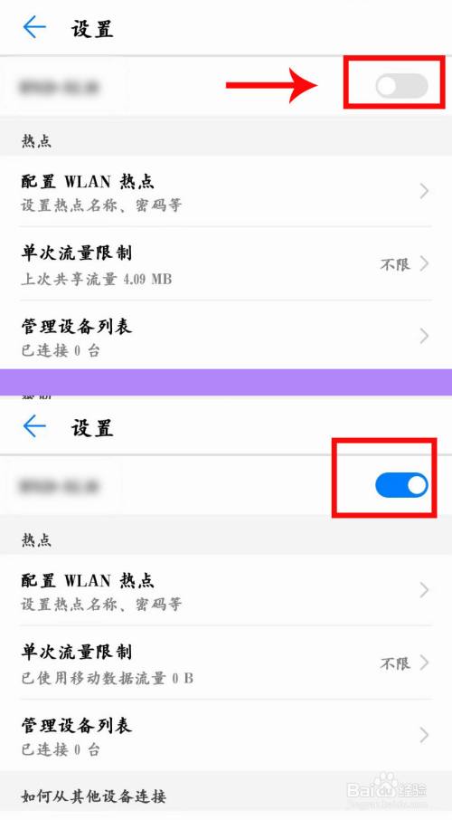 点击设置下方第一栏热点名称后面的按钮,按钮变为蓝色即为开启状态,一般热点名称默认为我们的设备名称