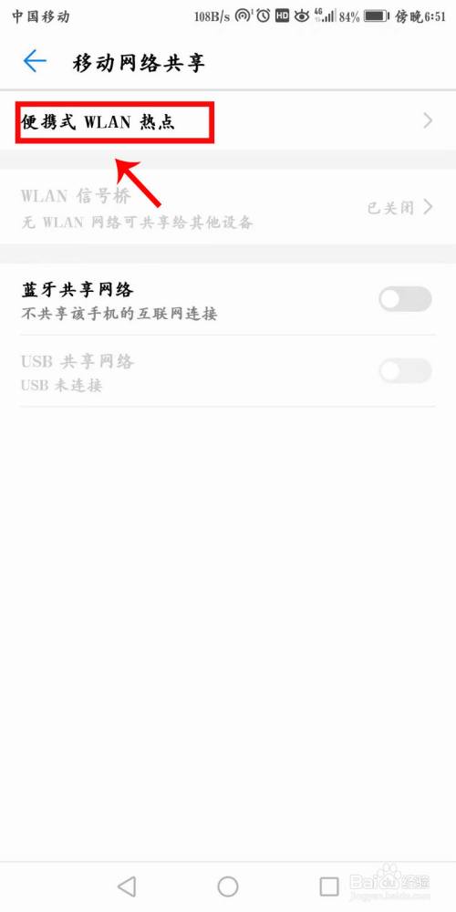 点击【移动网络共享】界面的【便携式WLAN热点】