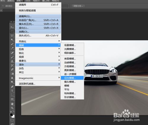如下图我们在工具栏“滤镜”-“模糊”-“径向模糊”。
