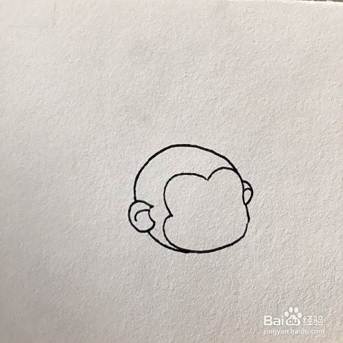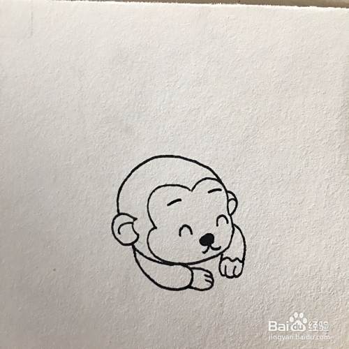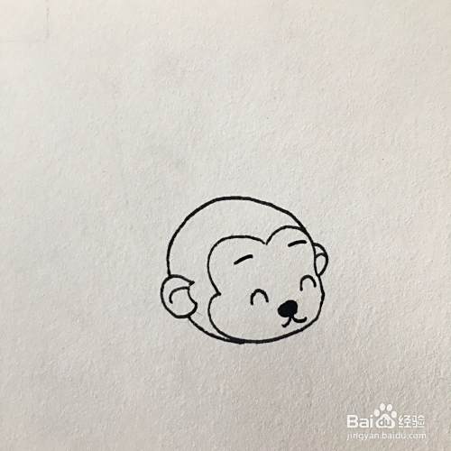 然后画出猴子的两只眼睛、鼻子、嘴巴,这样头部就画好了。