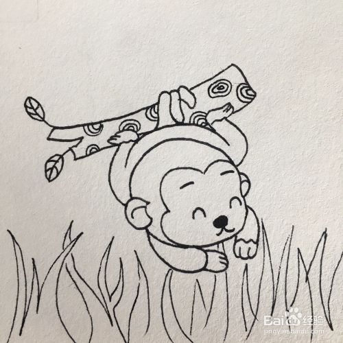 小猴子可爱灵活被很多人喜欢,想要画一只可爱的猴子 ,可以先画出倒挂在树上的猴子,具体如何画呢?