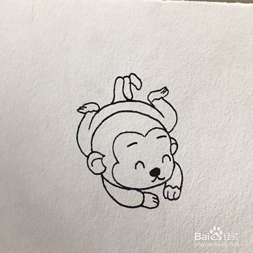 2、画出猴子的脸部细节,然后画出猴子的四肢和尾巴。