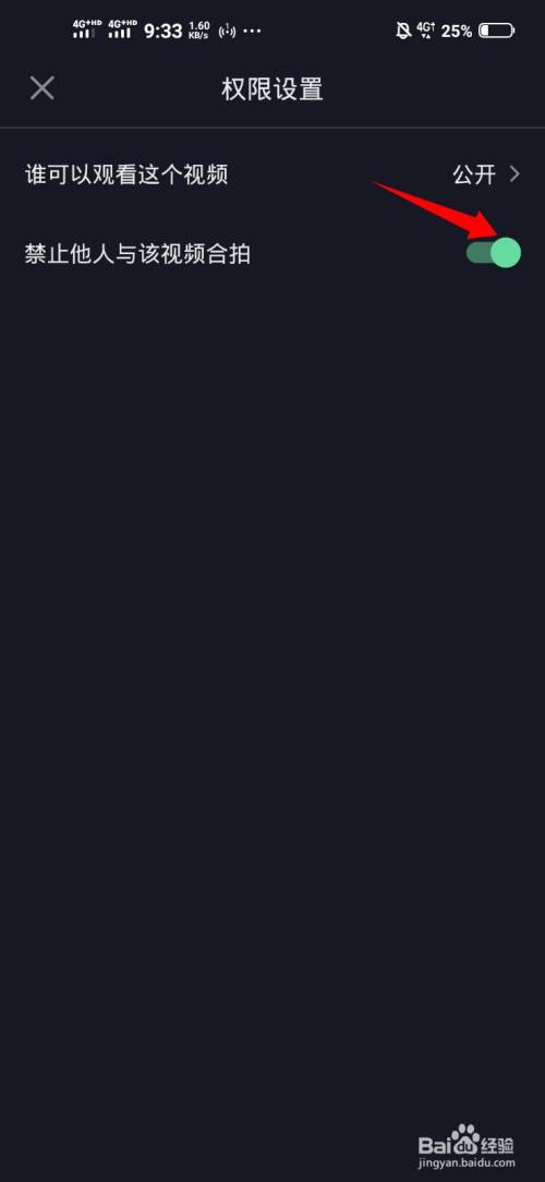 开关变成彩色之后即为打开,他人无法与该视频合拍。