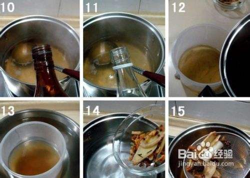 10-13、再放入绍酒搅匀关火,关火后倒入适量白酒,把调制好的汤汁倒入保鲜盒,再把保鲜盒蹲入凉水盆中冷却,期间不要溅入不洁的凉水,因此动作要轻,这样制出的汤汁使用多次不会变质。