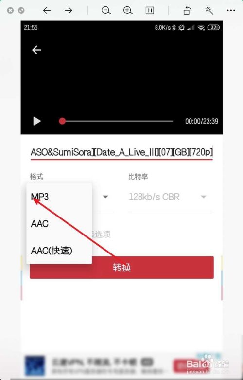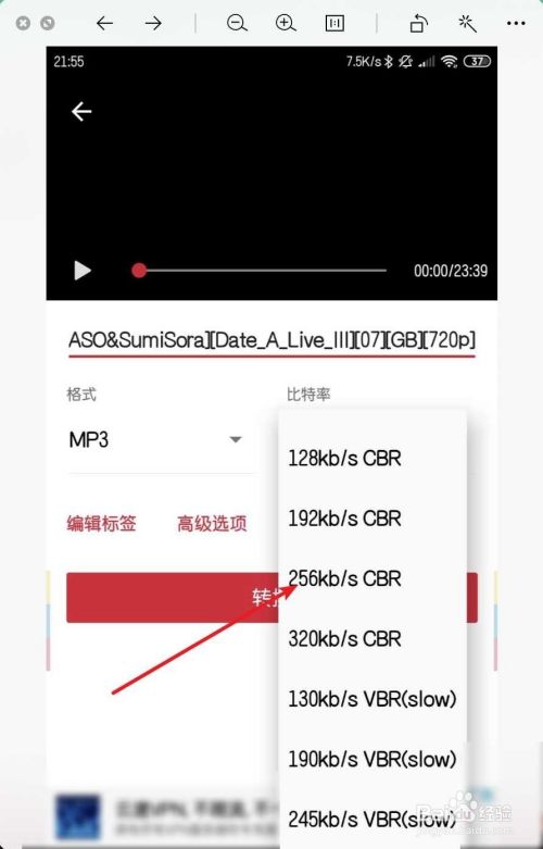点击比特率,选择你要的比特率,越高,那么音质越好。