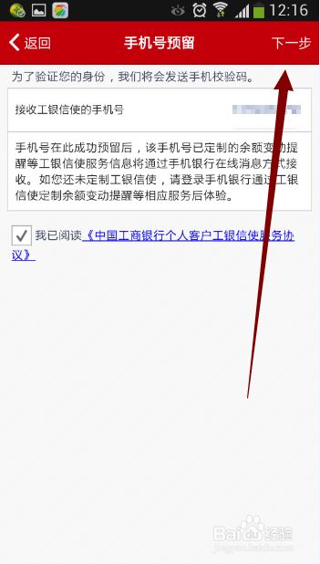 阅读后把勾勾上,上方输入手机号,点击下一步