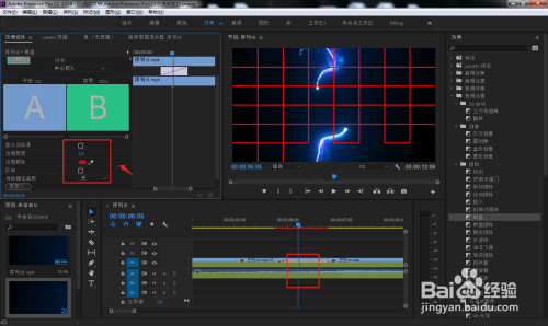 5.点击左上方的效果控件窗口,点击棋盘效果,调节边框颜色和宽度。