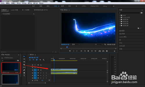 长按鼠标左键,将左侧导入的视频素材拖动到右侧时间轴上。