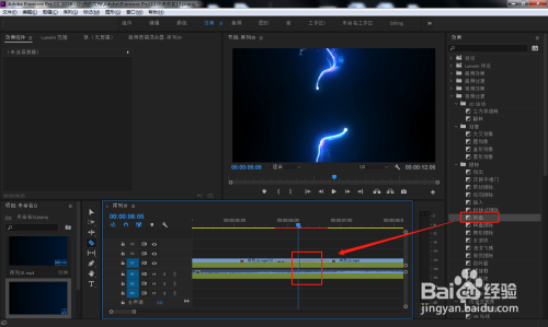 点击右侧效果窗口中的“视频过渡”——“擦除”——“棋盘”,将该效果拖动到时间轴视频轨道。