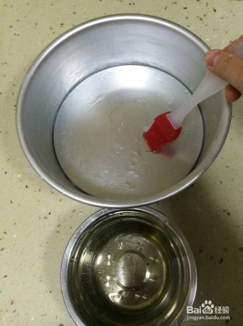准备一个8寸蛋糕模,底部和周围都刷上食用油。