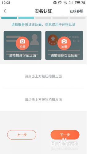 进入实名认证环节,拍摄身份证正反面,点击下一步。