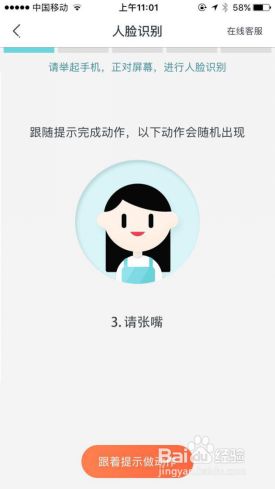 人脸识别环节,你需要举起手机、正对屏幕,按照动画人物的提示跟着她一起做动作。