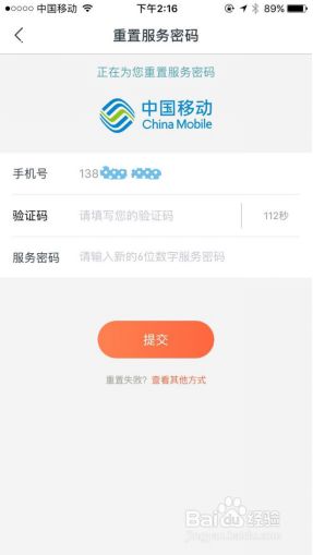 在手机号验证页面,输入手机号、验证码、和服务密码,点击提交。