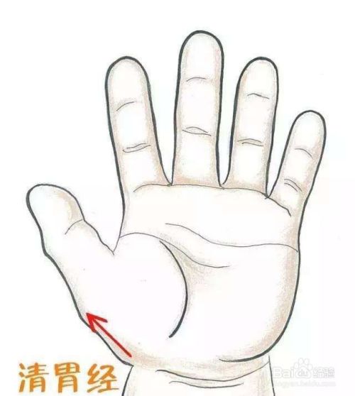 胃经在婴幼儿拇指掌面近掌端第1节,清胃经从掌根推向指尖,每次推50——500次。清除胃脏积食和湿热,和胃降逆。因为六腑必须畅通,畅通才能健康成长,清胃经恢复胃脏、胃经畅通无阻。