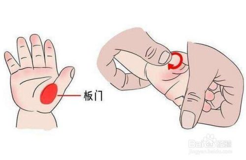 板门穴在小儿手掌大鱼际处。推拿师左手握住小儿的手指,用右手拇指蘸滑石粉,按揉板门穴。按揉时顺时针按摩,然后再逆时针按摩,禁止左三下右五下换来换取;来回推拿也能调整脾胃功能,恢复胃脏、胃经正常功能。