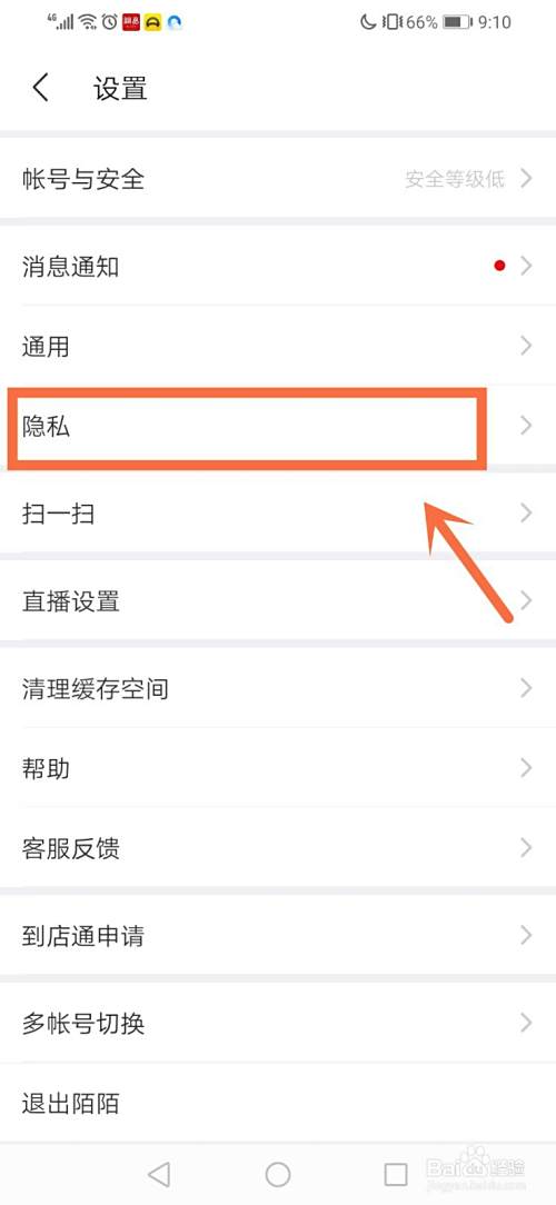 我们在里面选择这个“隐私”,从红色框框框住的这些地方,这一栏点进去都行。