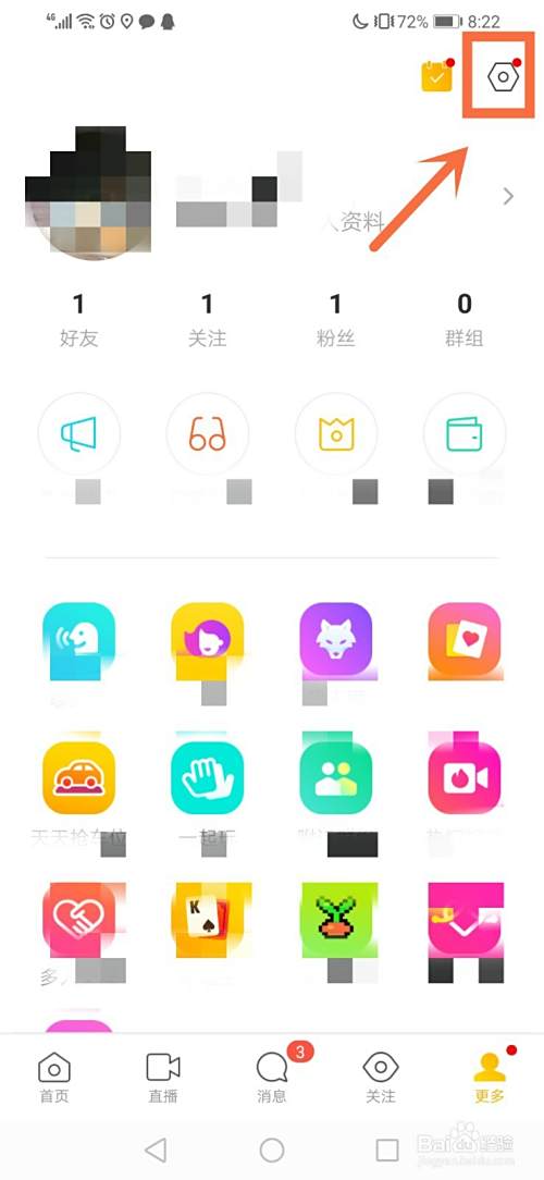 接着就是进入设置的界面,入口在我图片箭头所指的地方,显示一个齿轮形状的图标。
