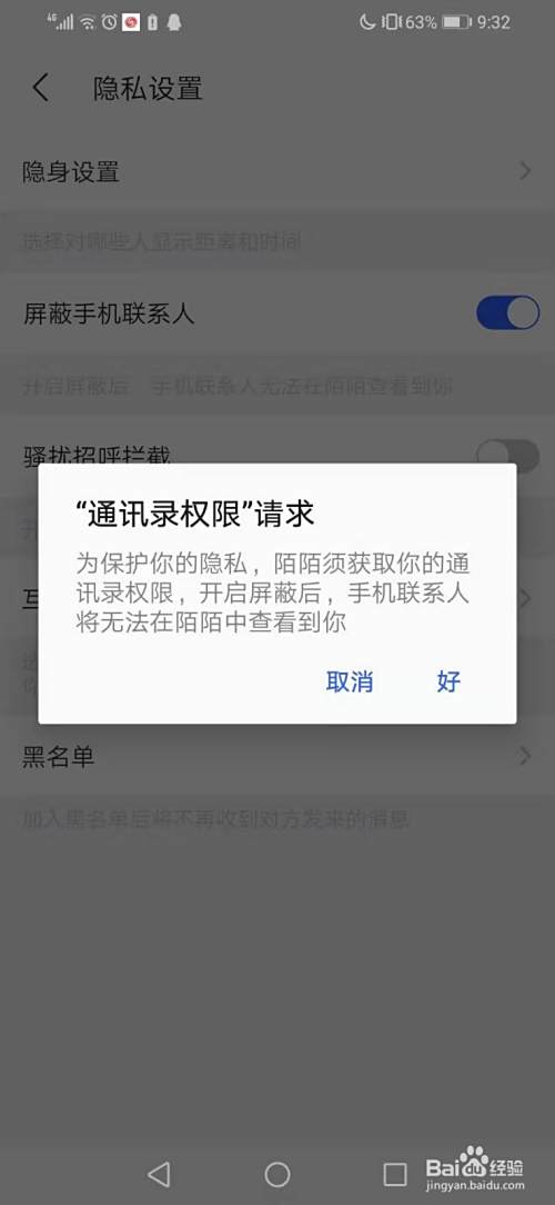接着陌陌会给我们一个弹窗,请求读取我们的“通讯录”,要获取读取通讯录的权限,我们点击好。