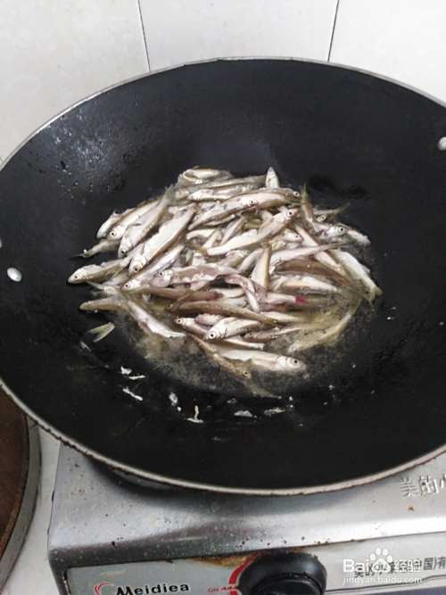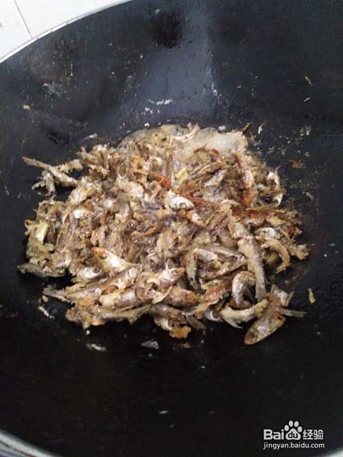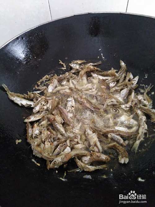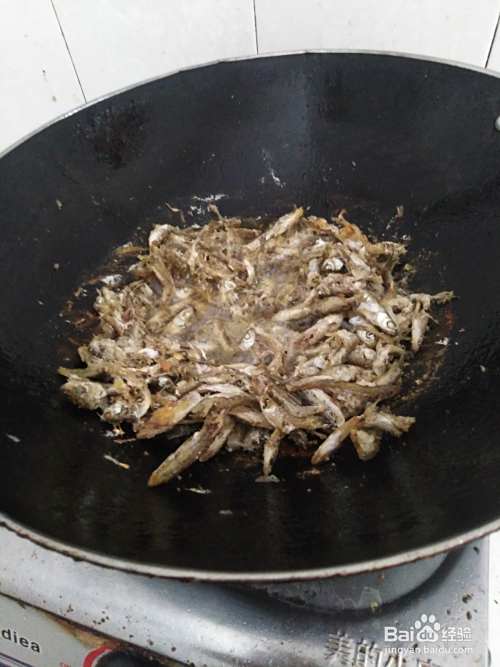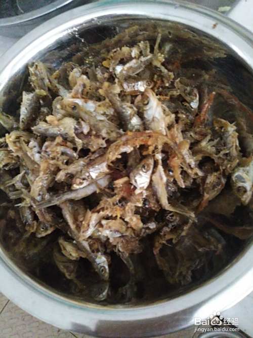 铁锅洗净热油,倒入杀好洗净的小鱼仔油炸成两面金黄色然后舀装碗里。