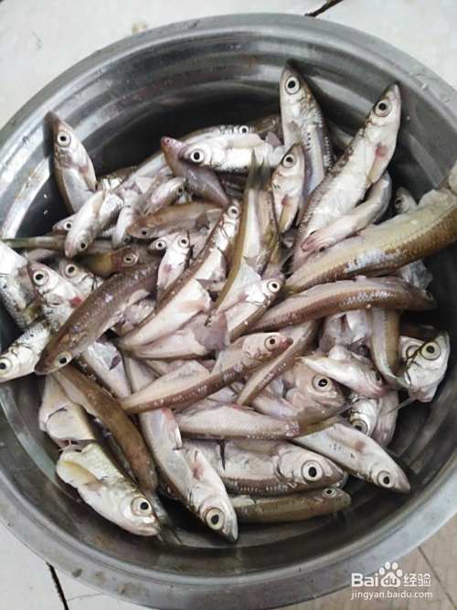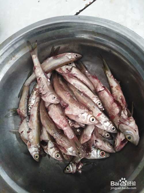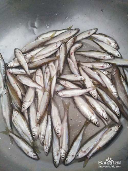 将买回来的小鱼仔剖开洗净,沥干水装碗里待用。