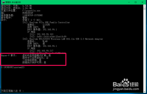 在管理员命令提示符中的Hyper-V虚拟机信息与系统信息中的一样。我的电脑不能完全运行Hyper-V虚拟机。