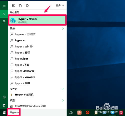 在搜索栏输入Hyper-V,点击Hyper-V管理器;