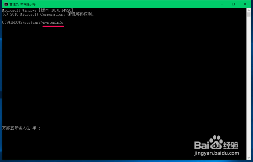 systeminfo命令粘贴好以后,按下键盘上的回车键(Enter), 待系统信息显示完全以后,找到