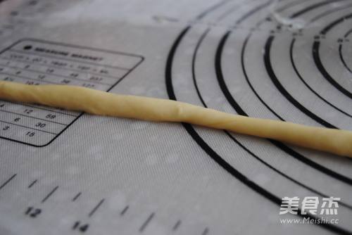 4取出一个小面团搓成长条,如果发现回缩的比较厉害就再醒3分钟