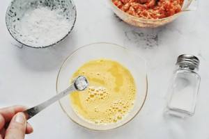 鸡蛋液打散,加入1小勺淀粉和少许盐,拌匀后过滤网。