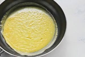 平底锅烧热,锅底擦少许油,分次倒入蛋液,小火煎至凝固后取出。