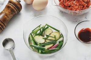 葱切段,姜切片,放入干净的碗里,倒入热水浸泡20分钟左右,滤去葱段姜片待用。