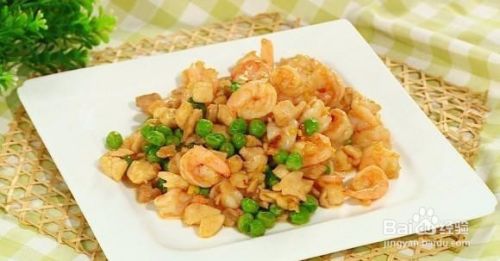 材料:鸡胸肉150g 虾仁 100g,姜适量 料酒适量 青豆50g 盐适量 耗油适量 胡椒粉适量 生粉适量