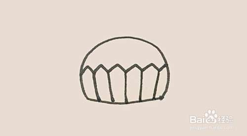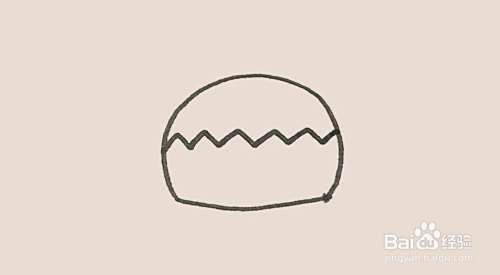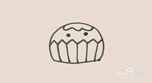 蛋糕上用波浪线画出奶油的感觉,并点上两个眼睛