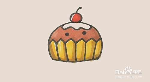 最后涂上好看的颜色,卡通小蛋糕就这样画好了