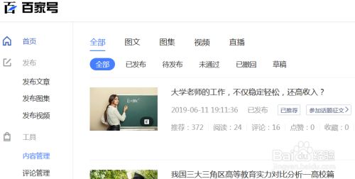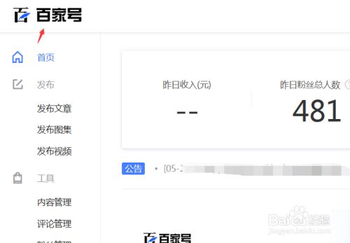 第四步就是点击左上角那个百家号的按钮,进入主页面: